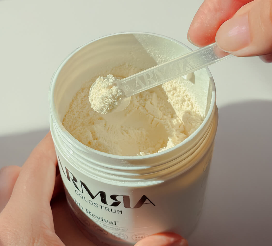 ARMRA's proprietary tech concentrates colostrum's 400+ bioactive nutrients in theirpure and naturally bioavailable form, better ensuring efficacy and digestive comfort.ARMRA removes certain compounds, like casein and fat, and concentrates targeted bioactive nutrients that support human physiology for optimized health.